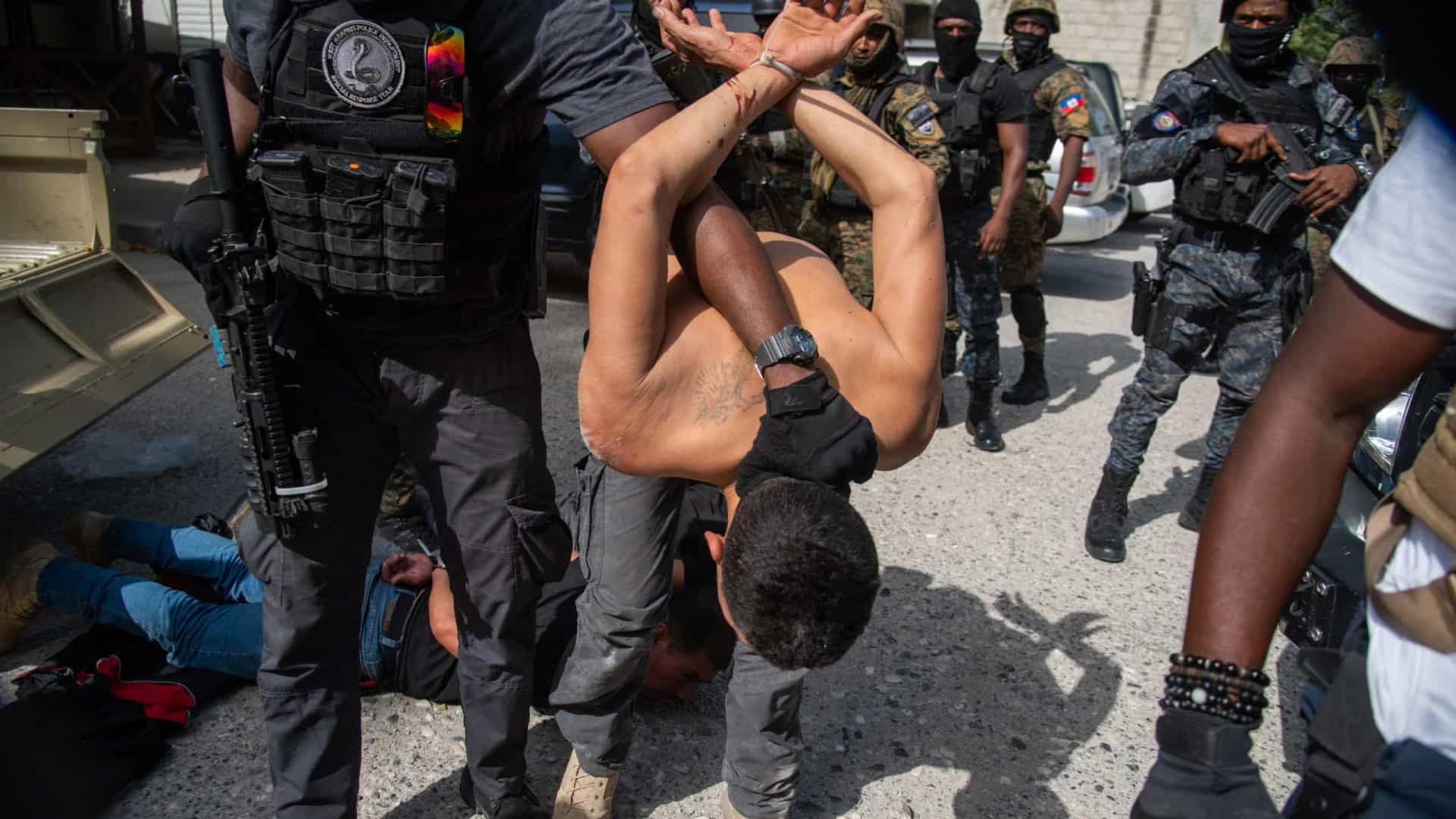 Dois dos detidos foram capturados por um grupo de civis, que os levaram amarrados com cordas para uma esquadra de polícia no bairro de Pétion-Ville, no bairro de Port-au-Prince.