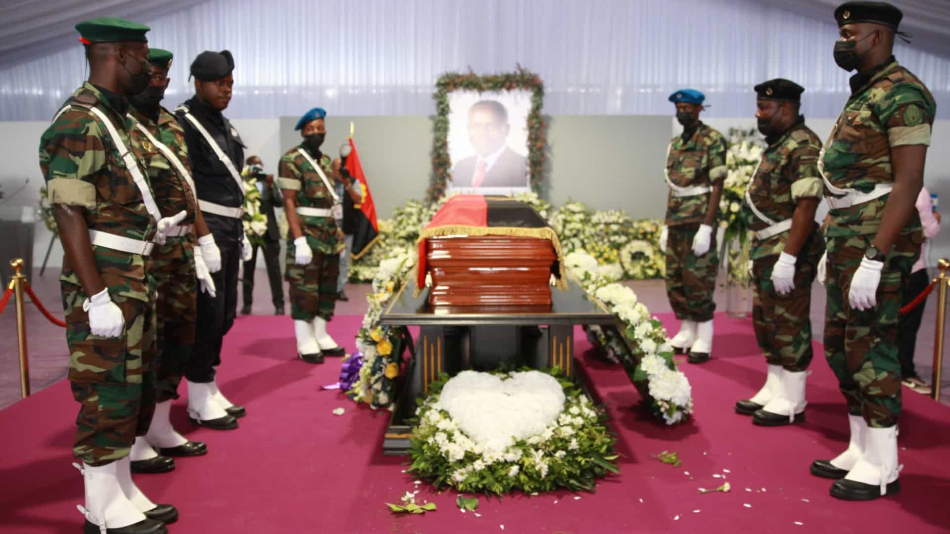 Após um momento de saudação e deposição de coroa de flores por parte do Presidente da República, João Lourenço, segue-se a saída da urna com honras militares e início do cortejo fúnebre para o jazigo onde haverá uma cerimónia restrita, com representantes de governos estrangeiros.